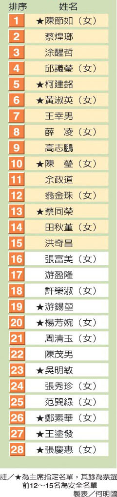 民进党不分区“立委”提名排序 台湾《联合报》图