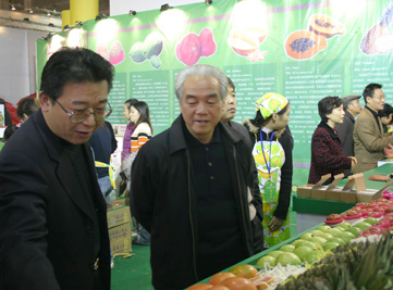 “中国湖南第七届农博会”上,湖南省台办佘友文主任(左二)到台湾水果展区参观。(资料图)