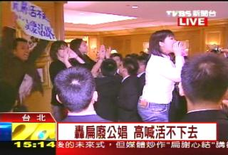 据台湾TVBS电视台报道,今天下午这4名向陈水扁呛声的民众自称是“日日春协会”的,不满昔日陈水扁在台北市长任内废除公娼的政策,因此选在今天陈参加活动时发难。他们在陈水扁身旁数米处,突然高喊口号并取出备好的大字报表达抗议。