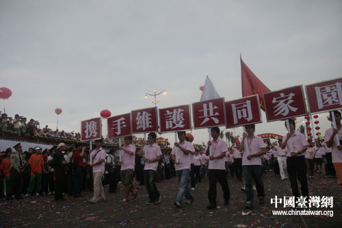 两岸大学生组成的方阵通过巡游主席台