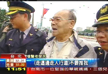 陈水扁上周才向老荣民呛声,说他们福利之多,领钱领到死,没想到今天在欢迎冈比亚总统时,一名老荣民在场外沿路高分贝呛声,“办正事嘛办正事,老百姓没饭吃,不对阿老百姓不能活”。老荣民到最后脏话不断,只依稀听到是冲着杜正胜。(高大林)