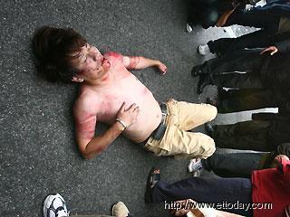 报道说,小货车冲撞冲突造成现场一片混乱,多名媒体记者因此挂彩受伤,有5男1女共计6位伤员被送到台大医院救治,其中,东森电视台的摄影王姓记者伤势最严重,仍在加护病房观察。