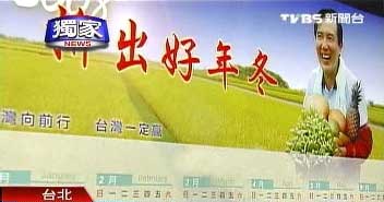 据报道,面对即将到来的2008年台湾地区领导人选举,马英九和民进党的谢长廷这两位竞争者连日来都频频下乡抢攻农民票。为此,国民党特别印制了30万份“马英九2008年年历”,将之前马英九穿着雨鞋、汗衫,脖子上挂着毛巾的草根农夫形象直接拿来当文宣,突显他要替台湾经济拼出好年冬的形象。