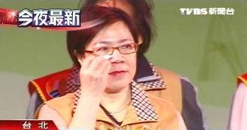 李安妮在台联党造势晚会上落泪。(台湾TVBS图)