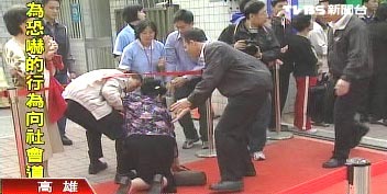 台湾老妇“扁迷”向陈水扁下跪遭带离 来源:台湾“TVBS”