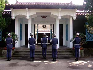 两蒋陵寝的仪队交接是谒陵民众最喜欢观看的仪式,24日以后可能看不到了。(台湾“中时电子报”图)