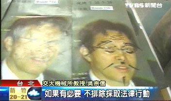 台当局“新闻局长”谢志伟海报肖像遭恶搞,来源:台湾“TVBS”