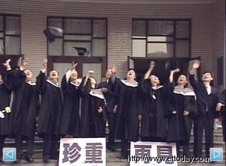 报道说,在歌声中,台湾地区第6届“立委”在12月21日台“立法院”第6会期停会的这一天“毕业了”,“立委”们穿着学士服、头戴学士帽在议场的中庭拍起毕业照,台“立法院长”王金平还亲自为每位“立委”拨穗,显得有点离情依依。“立委”侯水盛说,感觉真的轻松多了,因为当“立委”的生活质量很差,但也有所收获,总之毕业后就放空了。