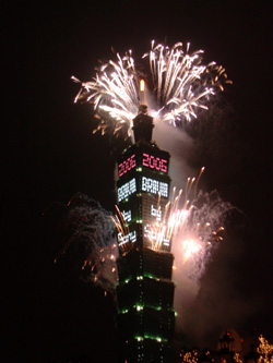 中国台湾网12月26日消息 据台湾媒体报道,在岛内众所瞩目的台北101大楼高空烟火秀将在跨年夜施放烟火188秒,同步打出“2008 TAIWAN”的字样。