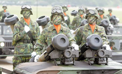 2008年元旦起,台军义务役兵只须服役1年。图为台陆军反装甲“标枪”导弹部队官兵。(台湾《中国时报》图片)