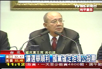 国民党主席吴伯雄会后强调,国民党在阶段领票上让步,以让选举顺利进行,但是“公投绑大选”,仍然是违反选举公平性。