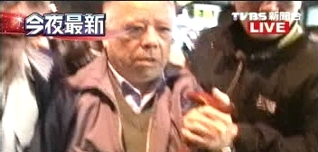 这名呛声民众大喊“不要脸!不要脸!陈水扁不要脸”!当场遭警察架离现场,在离开途中,还遭到挺绿民众追打。(赵静)