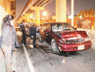 中国台湾网1月3日消息 据台湾媒体报道,台联党“立委”候选人林志嘉的妻子陈锦满,昨晚搭车替丈夫拜票“跑摊”时,在台北县五股乡等红灯时遭人酒后驾车追撞,陈锦满颈椎受伤、胸部挫伤被送院急救,所幸没有生命危险。