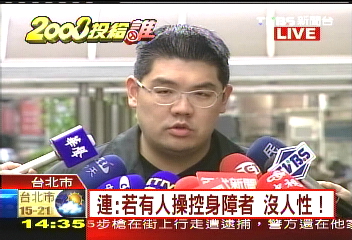 中国台湾网1月4日消息 据台湾TVBS报道,国民党中常委、连战长子连胜文今天接受记者采访时表示,他怀疑昨天袭击他的身心障碍人士是受到别有用心的人利用。