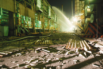 台湾“中油”高雄炼油厂昨晚发生氢气爆炸,现场满目疮痍。(联合报图)