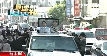 中国台湾网1月6日消息 据台湾TVBS电视台报道,陈水扁今天在中台湾扫街抢票,但仍旧碰上不喜欢他的民众,有人高举自制的倒扁标语,有人比倒扁手势。陈水扁3公里的扫街路程也忙坏了随扈和执勤警察,甚至有随扈累到不行,从车上跌下来,摔个四脚朝天。
