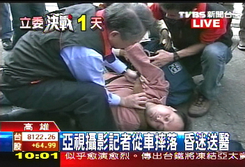 中国台湾网1月11日消息 香港亚视摄影记者李东杰,今天在采访台湾“立委”竞选活动时不慎从车上摔落,当场昏厥,立即被送医急救。高雄医学大学附属医院对伤者进行3个小时的开脑手术,但伤者仍处于深度昏迷状态,至少留院两三日,进一步治疗。