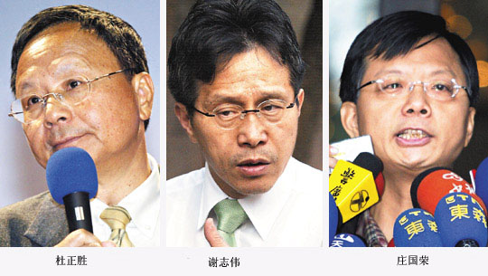 中国台湾网1月15日消息 继日前吕秀莲电视上痛批“上杜(台当局“教育部长”杜正胜)下谢(台当局“新闻局长”谢志伟)连庄(台当局“教育部主任秘书”庄国荣)”之后,昨晚她再次将炮口对向了这三位民进党当局的高层,民进党2008参选人谢长廷竞选阵营也纷纷表态支持吕秀莲,一些幕僚直言,“上杜下谢连庄”被塑造成民进党“新三宝”,对选情冲击很大。