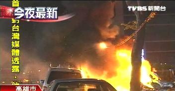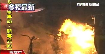 高雄闹市区火烧车。(台湾TVBS图)