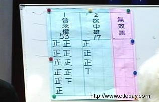 国民党主席吴伯雄决定,抽签决定得票次高的3位候选人谁能晋级第二轮,最后徐中雄抽中,但经过投票之后,还是由曾永权出线。国民党将以王曾配角逐下届台湾“立法院”正、副“院长”。(高大林)