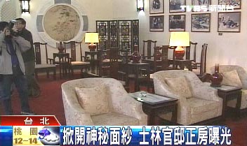 中国台湾网1月24日消息 据台湾TVBS电视台报道,蒋介石生前居住的士林官邸虽然开放了,但蒋介石住的正房,一直从未对外开放过,这让长期提倡开放官邸的团体很不满;昨天上午,民代前往正房会勘,让从未曝光的士林官邸正房有机会呈现在大家面前。