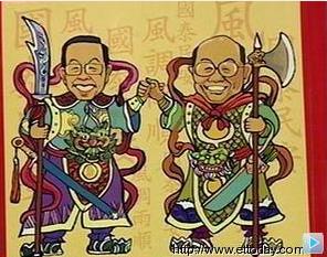 据台东森新闻网报道,在谢长廷阵营推出的这版Q版农民历上,原本农民历上的门神变成了谢长廷与苏贞昌两人的卡通造型,寓意他们会为台湾守住大门,下面一行“长”治久安更是意味深远。会有这样的文宣构想,原来是谢长廷之前下乡拜拜时,求到一支“长治久安”的签给他的灵感。