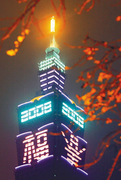 中国台湾网2月4日消息 据台湾《联合报》报道,农历年脚步已近,台湾各地已闻到过年的气氛,台北101大楼秀出“春”、“福”字样向市民拜年,在夜晚别有一番风味。(周先)