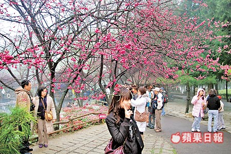南投县九族文化村表示,春节期间园内2000株樱花树盛放,初二、初三都有2万名以上游客,业绩比去年增长近20%。(周先)