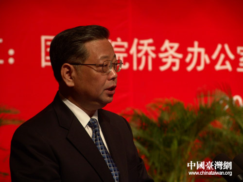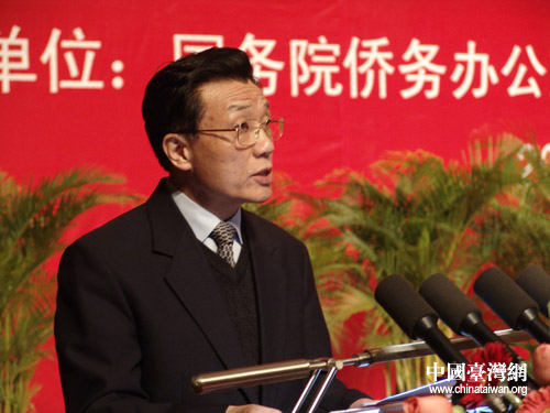国务院侨务办公室主任李海峰在开幕式上致辞。她说,无论是中华民族移民台湾的历史,还是现存民间的万种家谱,都记载着台湾同胞和祖国大陆特别是海峡西岸之间广泛而密切的血缘亲情关系。今天,虽然两岸尚未统一,但大陆和台湾同属一个中国的事实从未改变。这是任何人也无法否认的历史事实。令人痛心的是,在两岸同胞一心求和平、求稳定、求发展,希望共同建设美好家园的今天,竟有那么一些人,为一党一己之私,刻意歪曲台湾同胞爱国爱乡的情怀和当家作主的意愿,变本加厉地从事“去中国化”、“文化台独”、“法理台独”等分裂活动,企图以此挑起两岸冲突,欺骗民众,骗取选票,实现“台独”分裂图谋。这一严重危害两岸关系和平发展的行径,理所当然引起了两岸同胞和广大海外侨胞的强烈反对。我们高兴地看到,广大海外侨胞、港澳同胞长期以来一直高度关注台海局势的发展和两岸关系的前景,充分发挥独特优势和影响,积极开展各种形式的“反独促统”活动,表达他们期盼中国早日实现完全统一的真诚愿望和强烈诉求。