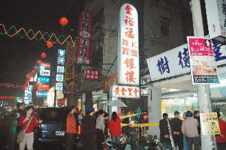不少民众在遭抢劫银楼外围观 (台湾《联合报》图片)