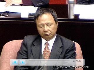 报道称,下午正当台当局“行政院长”张俊雄在台上说得唾沫横飞时,杜正胜拿下眼镜,赫然又在“闭目养神”。不过,可能意识到有媒体在拍,杜正胜又睁开眼睛,摸摸手。(高大林)