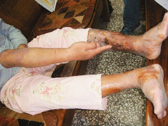“警察先生救我!我要报案!”台湾高雄县冈山警分局警察昨天看到许某时,倒吸一口气。他不但手脚浮肿,脚因铁链长期磨擦,多处破皮溃烂流脓,脸颈满布伤痕,“可说体无完肤”。可能因多日未进食,向警察讨泡面吃,连吃两碗。