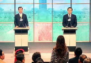 据台湾TVBS 电视台报道,马英九谢长廷第一次在辩论会上交锋,比政见外,还有一个有趣的话题,就是明明比马英九矮16公分的谢长廷,却在电视画面上比马英九高。眼尖的民众看出问题,还打电话到台当局“中选会”抗议,质疑谢长廷是不是搞小动作,让自己看起来高一些。