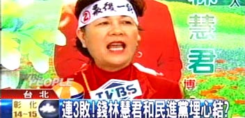 钱林慧君2005年投入台南市长选战,又和民进党硬碰硬;大绿切割毫不留情,钱林慧君再次落败。因为“立委”、市长,连选连输,台联党内部透露,钱林慧君扮起主战的鹰派角色跟民进党打割喉战,今年“立委”选举台联党全军覆没,被提名列不分区“立委”的钱林慧君也吞下第三败。从深绿站到蓝军身边,钱林慧君转向的背后很难不联结她与民进党难解的心结。(高大林)