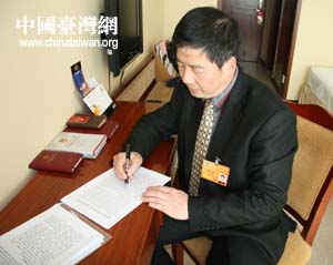 第十一界全国政协委员骆沙鸣已经提交了十八份提案。(张弛 摄)