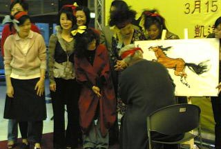 这次集会所有参与活动的民众,都会戴上万马奔腾彩带,彩带上是由书法大师李奇茂创作的万马奔腾图样,象征要扫除贪腐,迎接新台湾。(高大林)