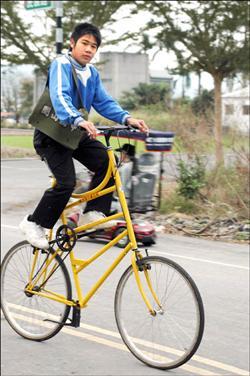 中国台湾网3月13日消息 人矮不见得就要骑小车,就读台湾关山初中二年级的曾智慧,虽然目前不满150公分,但却爱上了比自己高的“高人一等脚踏车(自行车)”,并将其作为自己上下学的交通工具,享受“居高临下”的感觉。