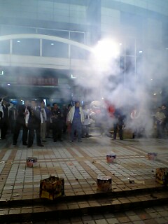 泛蓝支持者不仅将马英九竞选总部和国民党中央党部挤爆狂欢,甚至就在街头开起庆功宴,高喊“马英九冻蒜”,整个气氛High到最高点。(周先)