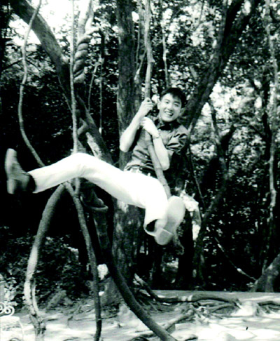 好动中学生:高中时代的马英九,出游时留下了这张荡树藤的照片,难得展现俏皮的一面。