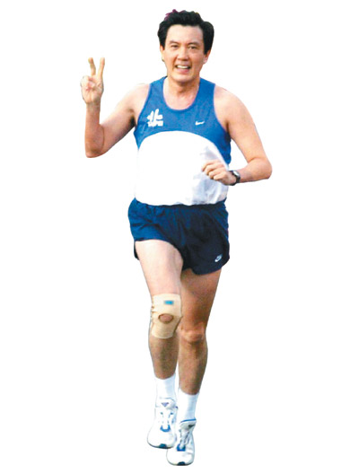 跑出新纪元:马英九喜欢运动,慢跑是他长期的习惯,招牌短裤“一路跑来,始终如一”。