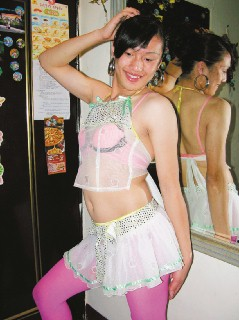 台湾新竹县初中二年级男生黄念平喜爱表演反串秀,舞台装扮超辣,他常对着镜子练习肢体动作,希望能有专业演出。(台湾《联合报》图片)