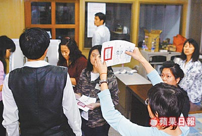 3月22日当天投开票所计票情形。(图:苹果日报)