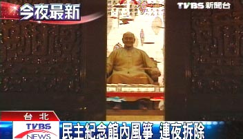 另据台湾TVBS报道,“台湾民主纪念馆”里的300多支风筝,将在今天晚上连夜拆除,288基金会表示,拆除风筝后,大厅里不会只有蒋介石铜像,其它的空间规划,准备下星期公诸于世。而拆风筝的过程,原本不准任何媒体拍摄,但和绿营关系不错的台湾民视电视台却被允许拍摄。(高大林)