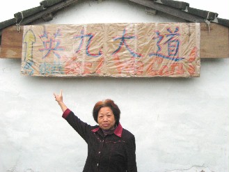 苗栗马家庄暴红,有民众在家门外挂上“英九大道”路标。(联合报图)