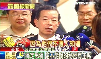 报道称,为了避免派系恶斗造成民进党撕裂,民进党“立法院”党团疾呼下届党主席应以协调产生人选再登记。谢长廷说,他也不反对协调,但必须先有人选才好协调,因此民进党中央将按正常选务程序办理党主席登记作业,已经有2人向他表达参选意愿。民进党内人士私下表示,其中一位应该是民进党籍“立委”蔡同荣。