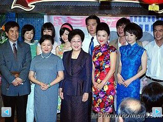 吕秀莲(前排中)8日亲自出席狱中小说《这三个女人》电视剧定装记者会。台湾东森新闻记者朱家彦摄