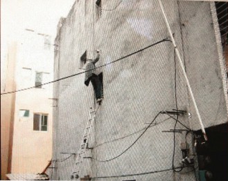 中国台湾网4月10日消息 台一惯偷郑某行窃上百次,被台法院判刑206年。昨天又涉嫌在台彰化市入室盗窃,被人发现后,自3楼窗口爬出,抓着墙边凸出的钢筋企图逃走;因无处可攀爬,挂在半空中20多分钟,由当地警方竖起铝梯搭救,并依窃盗罪逮捕。