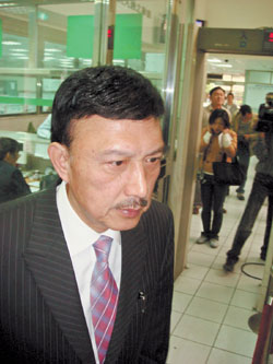 选战期间余天遭控涉及组织犯罪、恐吓、妨害名誉及违反“选罢法”等案,昨日前往板桥地检署应讯。(台湾《中国时报》图片)