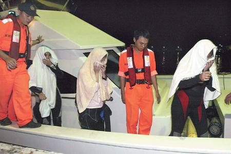 “南青号”游艇26日由后壁湖渔港出港,搭载14人到台东垦丁七星岩海域潜水,有8人下海后失踪。幸运逃过一劫的游客,昨晚返回后壁湖渔港,由当地海巡人员带回安置。(台湾《中国时报》图片)