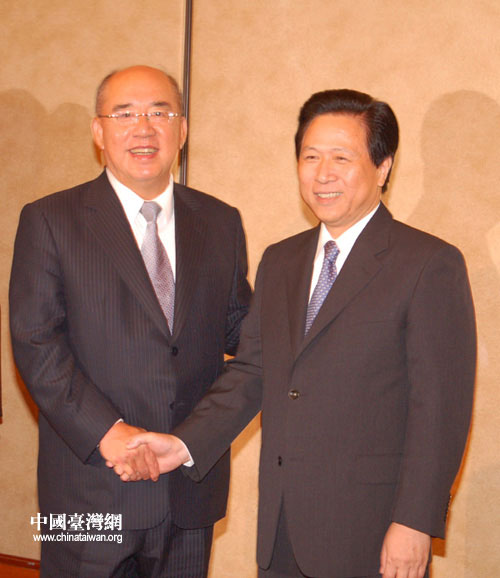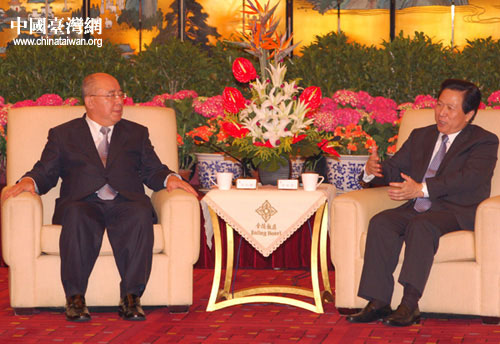 5月26日,中共江苏省委书记梁保华在南京会见中国国民党主席吴伯雄。 中国台湾网记者田云鹏摄